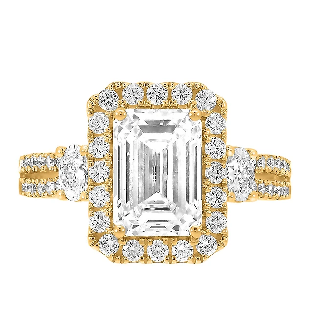 Emerald Cut Halo Engagement Ring with 3.40 Carat TW of Lab Created Diamonds in 14kt Yellow Gold
