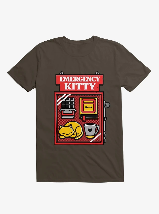 Emergency Kitty Brown T-Shirt