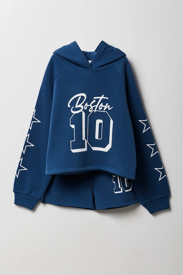 Ensemble avec haut à capuchon en molleton imprimé et short pour fille