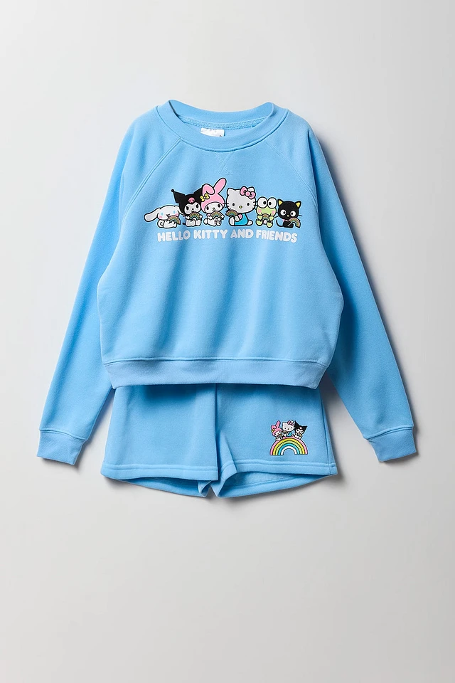 Ensemble deux pièces chandail et short en molleton à imprimé Hello Kitty & Friends pour filles