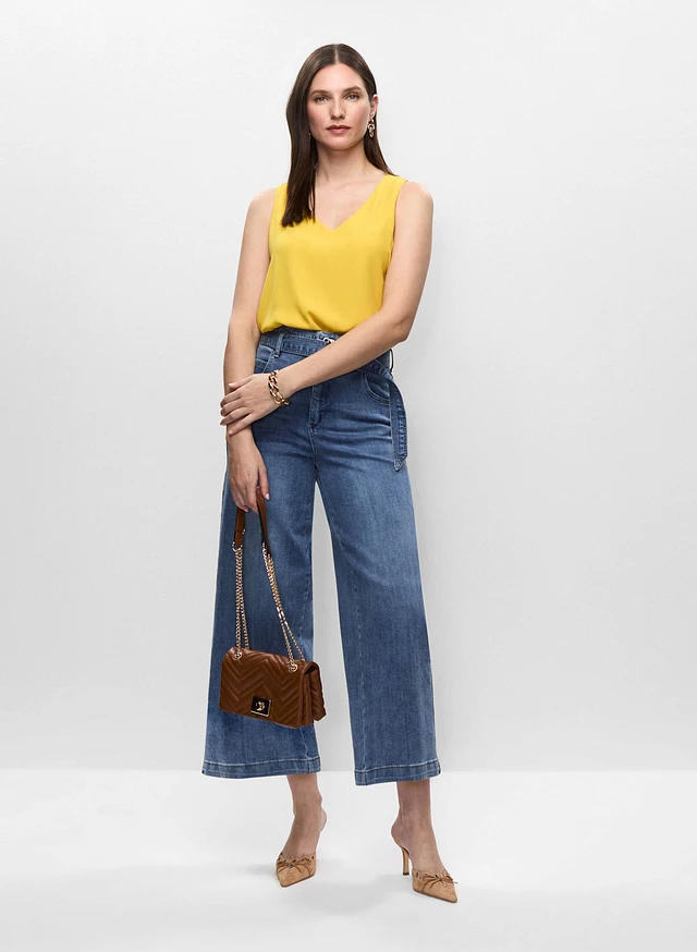 Essential Sleeveless V-Neck Blouse & Belted Culotte Jeans