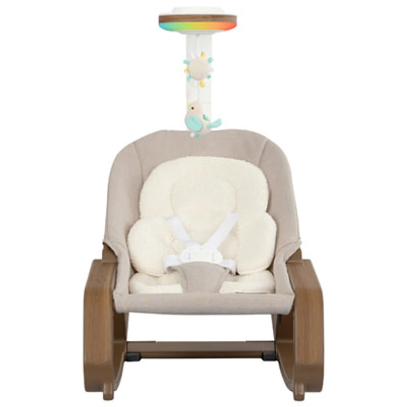 The Evenflo Lyra infant-to-toddler rocker is designed to grow with your baby. It seamlessly transitions from infant rocker to toddler mode for long-term use. It SensorySoothe Technology uses gentle lights, music, and sounds to create a naturally soothing environment. The rocker has a seat pad and dual-sided cushion with cozy fleece on one side and breathable mesh on the other. | Evenflo Lyra 2-in-1 Infant to Toddler Rocker