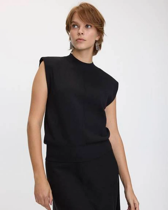 Extended-Sleeve Mock-Neck Top with Shoulder Pads
