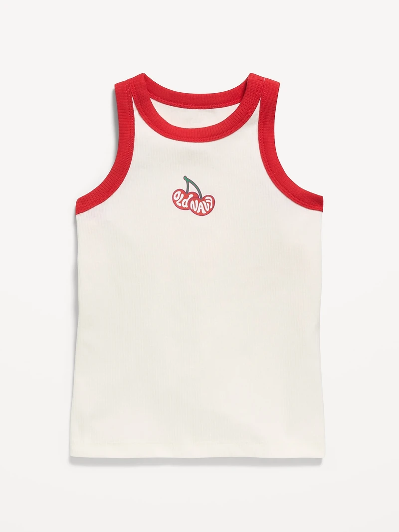 Fitted Ribbed Logo-Graphic Tank Top for Girls