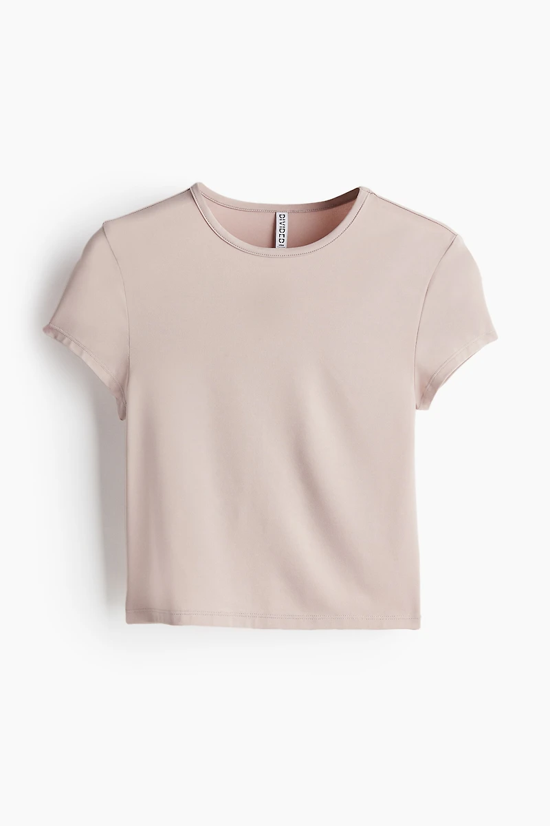 Short, fitted T-shirt in stretch jersey. Narrow trim at neckline and a straight-cut hem.