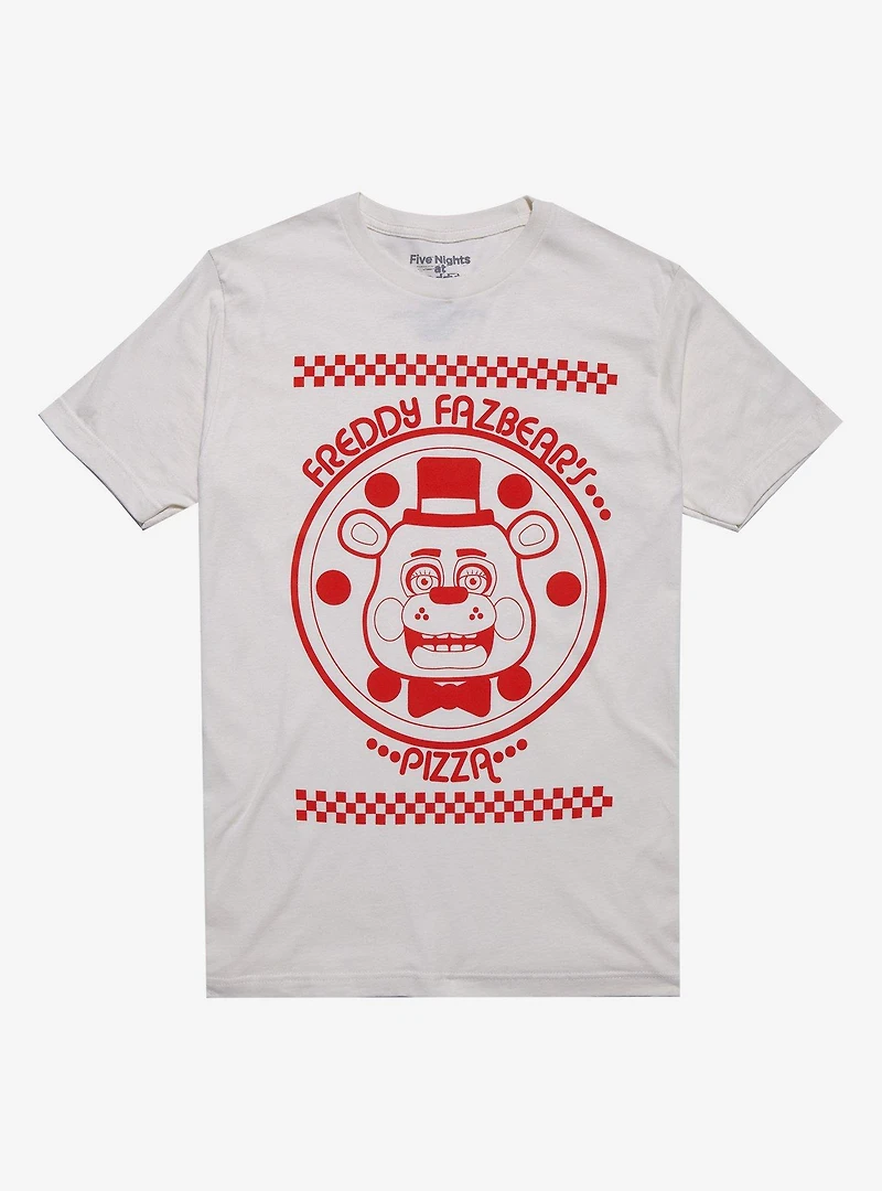 Hungry for pizza? Head to Freddy's! This tee shows a red Freddy Fazbear's Pizza logo.