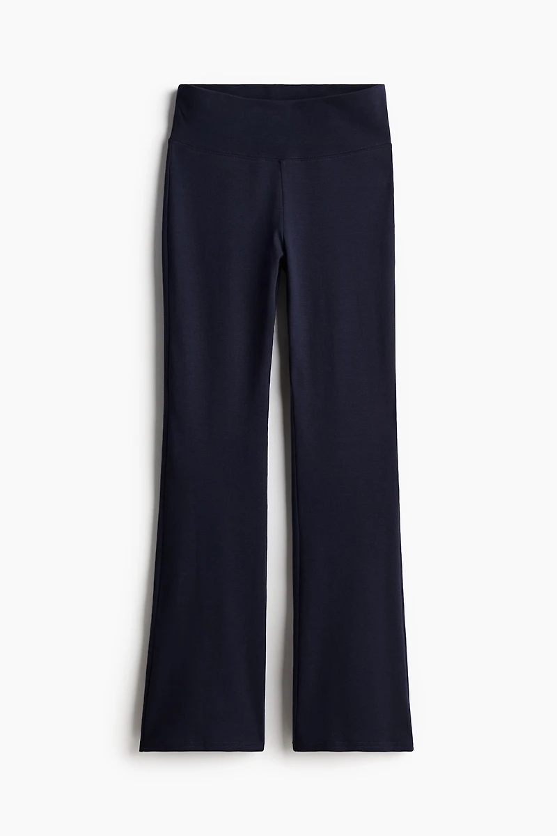 Leggings in soft jersey. Wide waistband panel and flared hems.