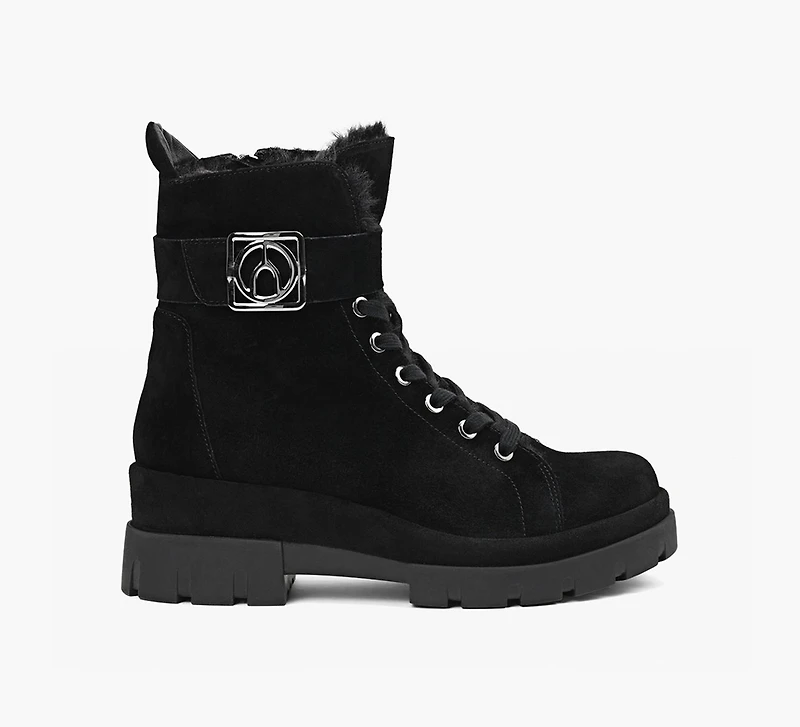 Temperatures may be dropping, but fret not: WISHBONE has you covered. Putting a winter-ready spin on the Floria bootie, this pair is trimmed with toasty faux fur to keep frosty toes at bay. Lacing up to an ankle-length cuff, they’re topped with a sturdy strap that’s fitted with a gleaming logo plaque for all to see.
