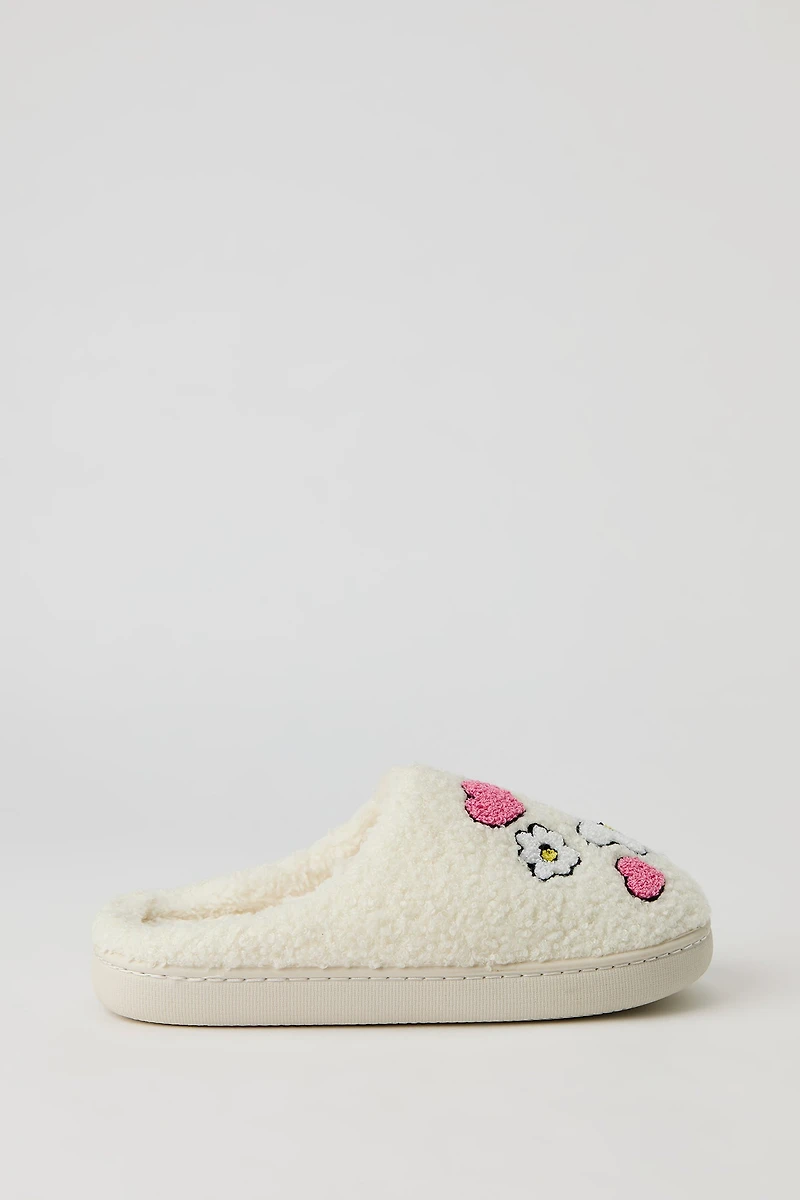 Flower Heart Sherpa Slippers