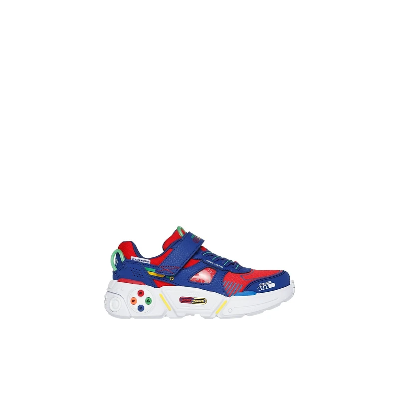 Step up the fun in awesome comfort with the Skechers Game Kicks®: Gametronix shoe. This lightweight sneaker features mesh and synthetic upper with a playful game themed design, Skechers Air-Cooled Memory Foam® insole and durable rubber outsole.