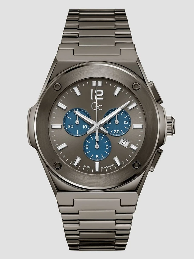 Gc Dark Silver-Tone and Blue Multifunction Watch