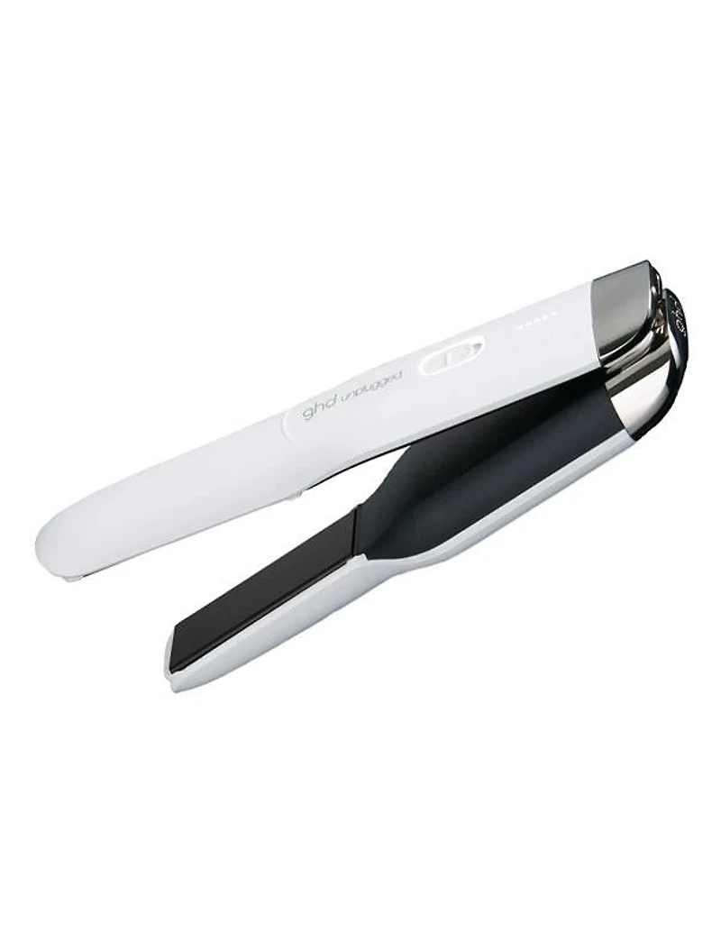 ghd Unplugged Black Styler White The ghd Unplugged cordless flat iron offers up to 20 minutes* of styling performance, making it ideal for sleek, smooth hair on the go. With dual-zone technology, it maintains a consistent 365°F temperature throughout styling, while ceramic-coated plates glide effortlessly to deliver salon-quality results with 65% more shine. Compact and lightweight—30% smaller and 47% lighter—the ghd Unplugged is perfect for quick touch-ups or style changes. It heats up in 45 seconds and features a 3-minute sleep mode to preserve battery life. Powered by hybrid co-lithium technology, the lithium-ion battery ensures long-lasting performance. Flight-friendly and paired with a heat-resistant case, the ghd Unplugged ensures every day can be a good hair day, no matter where you are.