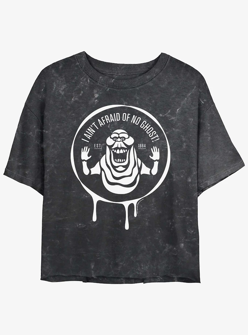Ghostbusters 1984 Ain't Afraid Of No Ghost Badge Girls Mineral Wash Crop T-Shirt