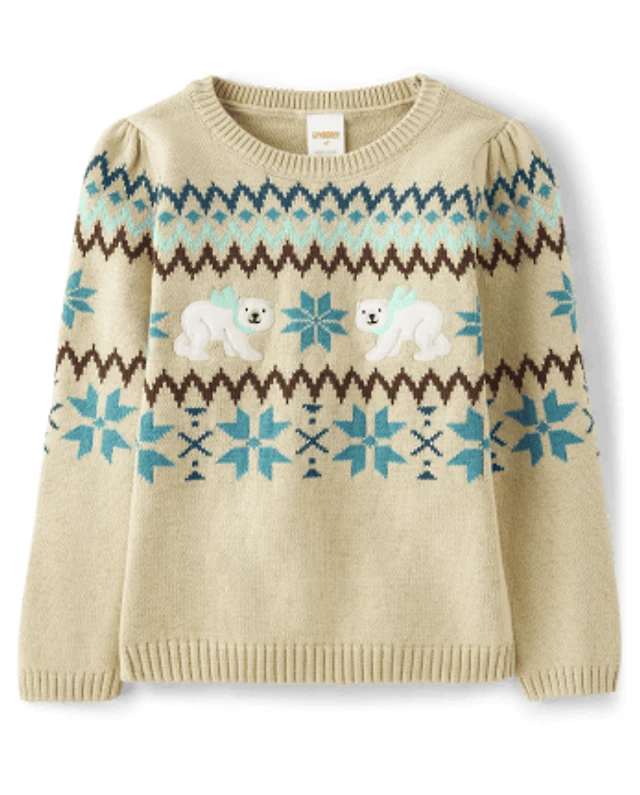 Girls Applique Polar Bear Fairisle Sweater - Nordic Adventure