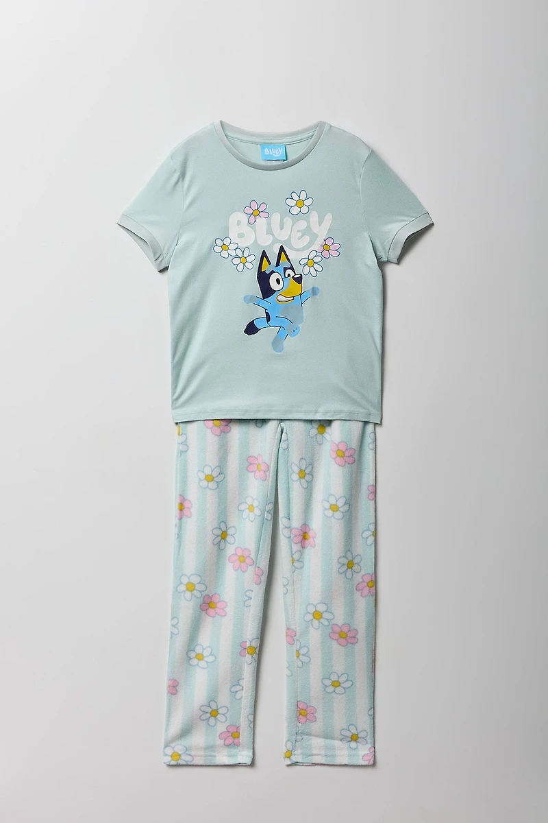 Girls Bluey T-Shirt & Plush Pant Pajama Set