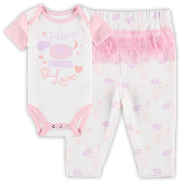 Girls Newborn & Infant White Green Bay Packers Spreading Love Bodysuit and Tutu Leggings Set