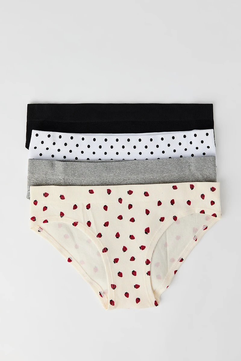 This pack comes with 4 pairs of bikini underwear featuring seamless construction, all-over ribbing, and elasticized waistband.