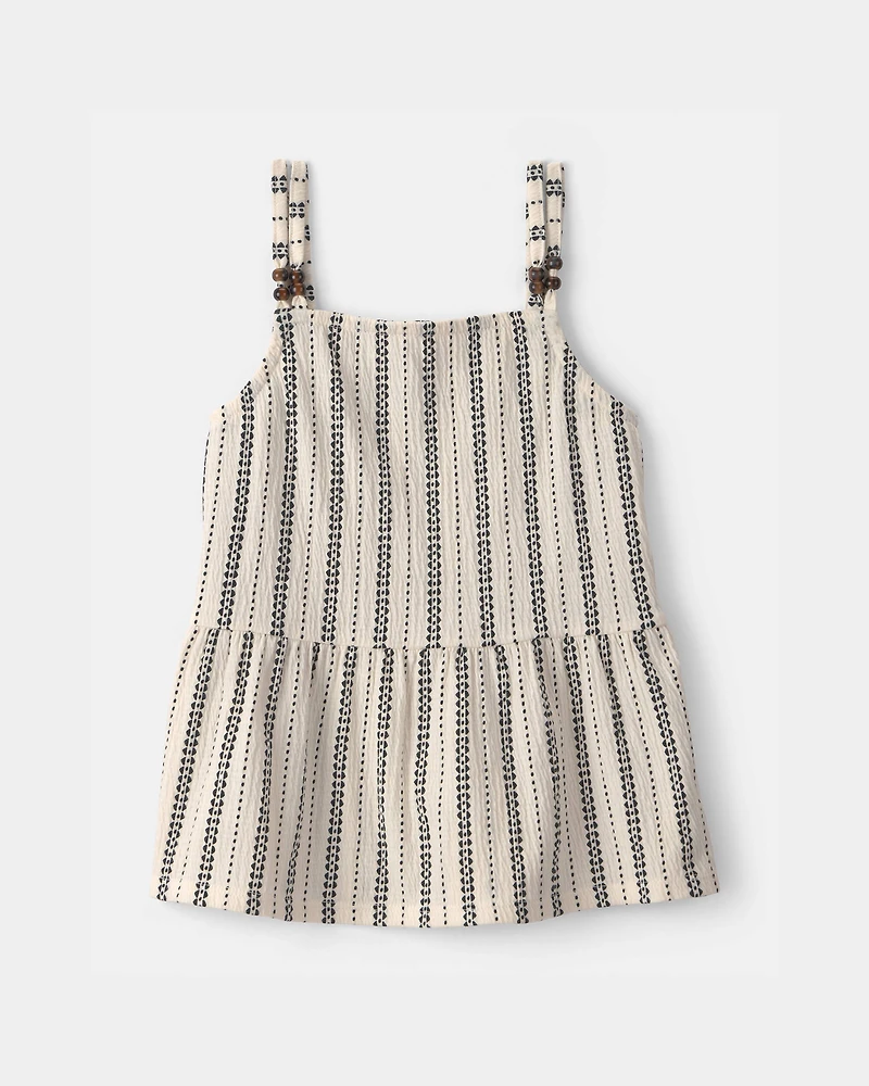 Elevate your little one’s warm-weather wardrobe with this charming sleeveless tank top. Made from soft jersey fabric, it ensures all-day comfort while allowing for easy dressing. The stylish cream hue features playful stripes, making it a versatile choice for any occasion. Perfect for layering or wearing solo, this tank top is designed for active days filled with fun, at the beach or at home.