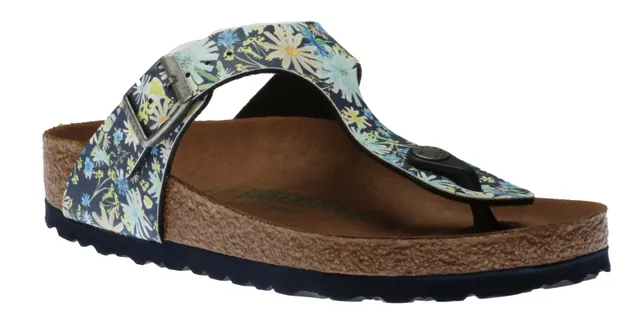 Gizeh Vegan Birko-Flor Summer Floral Blue Thong Sandal