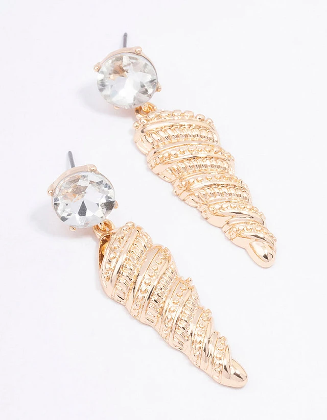 Gold Diamante Shell Drop Earrings