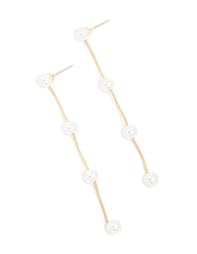Gold Pearls Station Drop Earrings in Brampton, ON