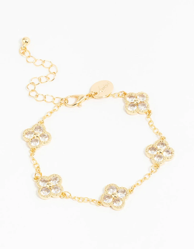 Gold Plated Cubic Zirconia Flower Station Bracelet