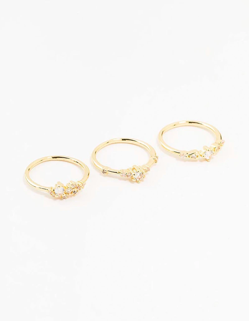 Gold Plated Dainty Cubic Zirconia Cluster Rings 3-PackGold Plated Dainty Cubic Zirconia Cluster Rings 3-PackGold Plated Dainty Cubic Zirconia Cluster Rings 3-Pack