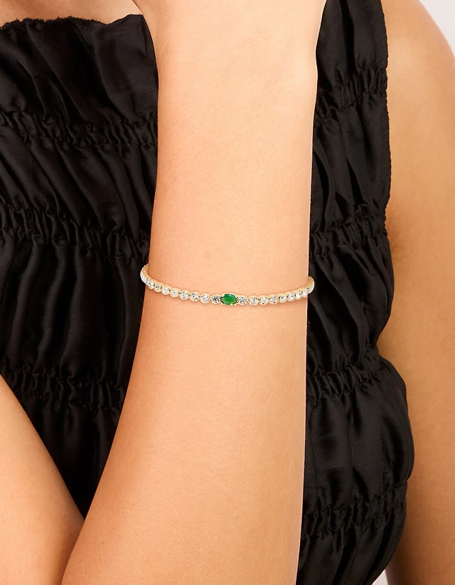 Gold Plated Emerald Cubic Zirconia Oval Bracelet