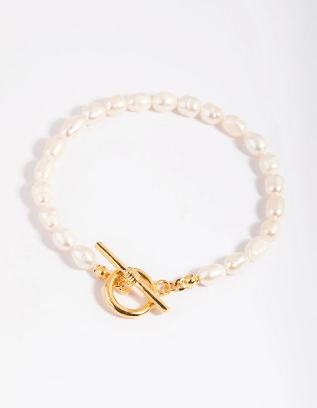 Gold Plated Pearl T & O Bracelet