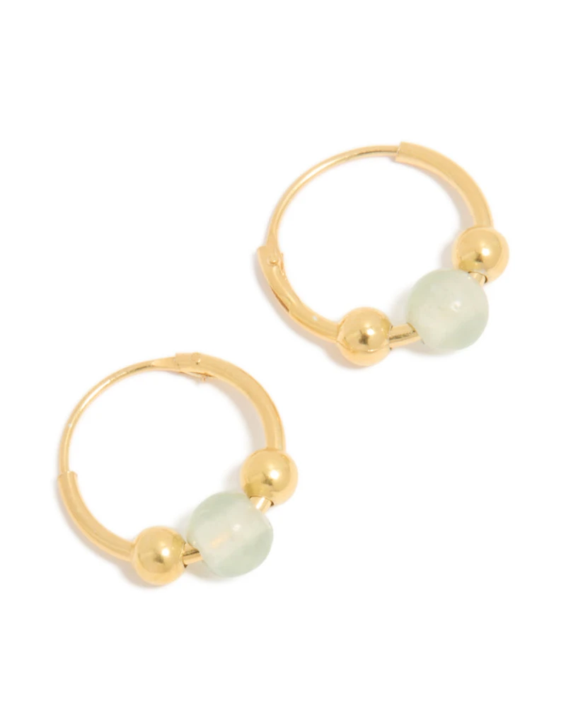 Gold Plated Sterling Silver Green Semi-Precious Stone Hoop Earrings