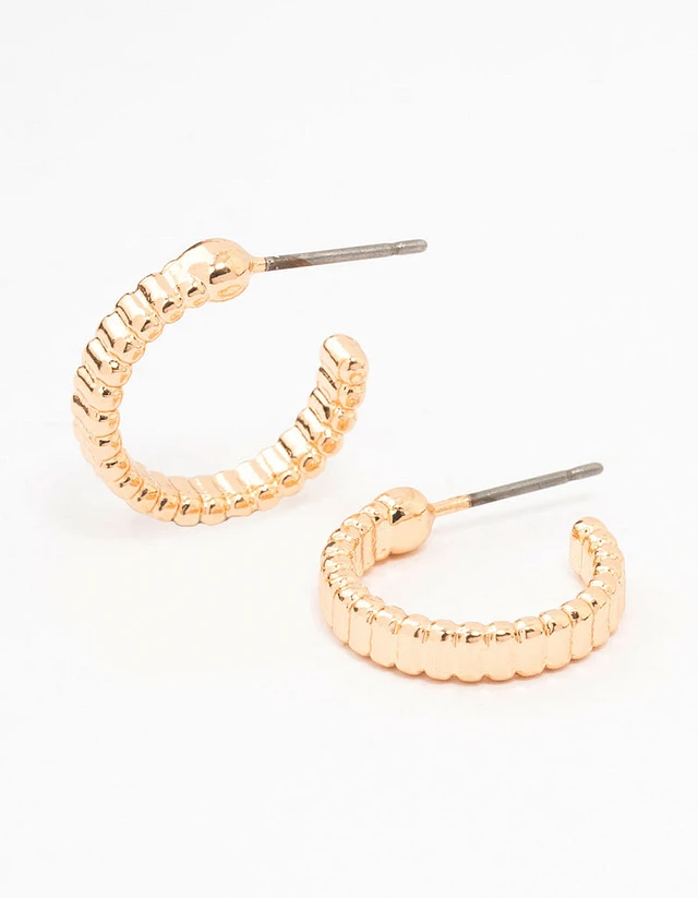 Gold Rippled Huggie Earrings