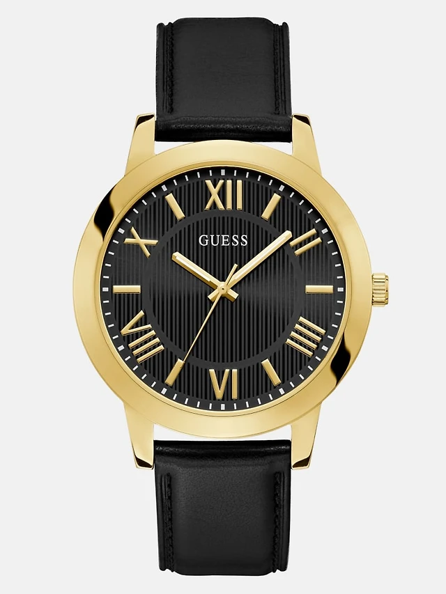 Gold-Tone and Black Leather Analog Watch