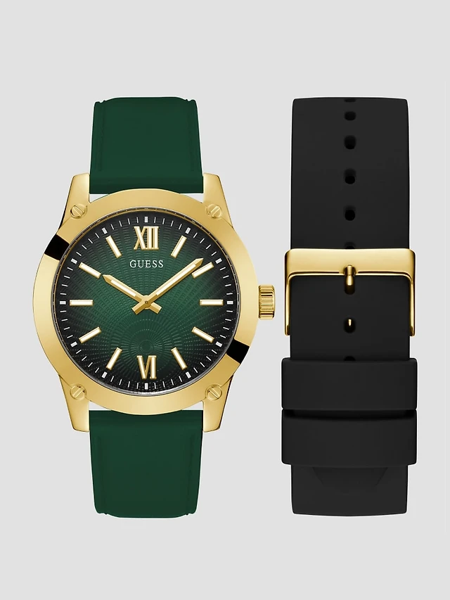 Quartz Watch in Gold Tone with Sunray-Patterned Green Dial