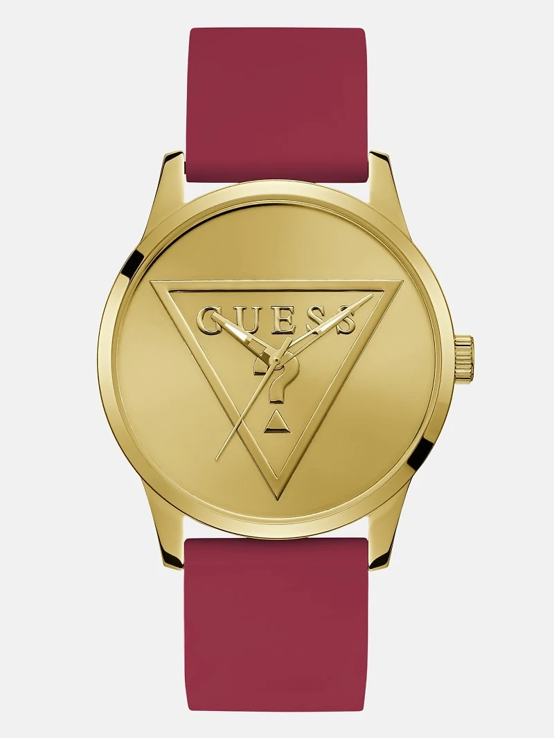 Gold-Tone Triangle and Red Silicone Analog Watch