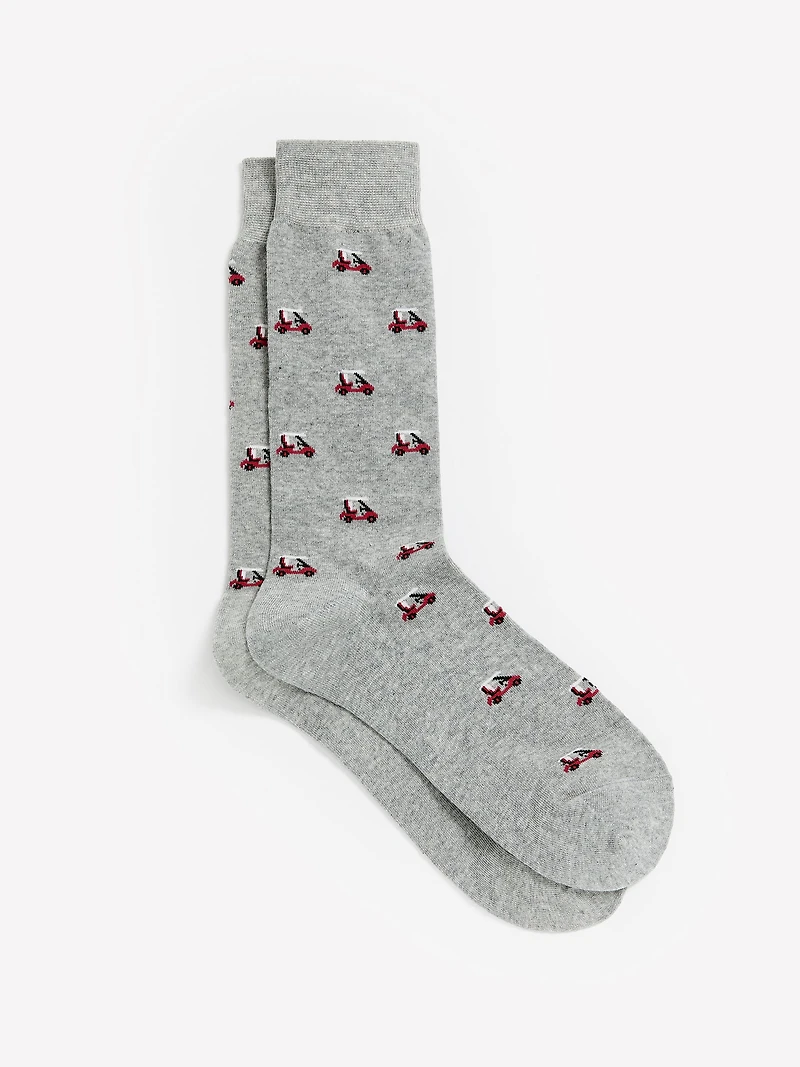 Add some personality to your outfit with these men's cotton-blend socks featuring golf carts.