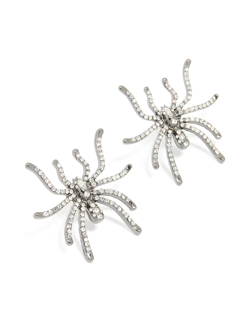 Gunmetal Large Spider Stud Earrings