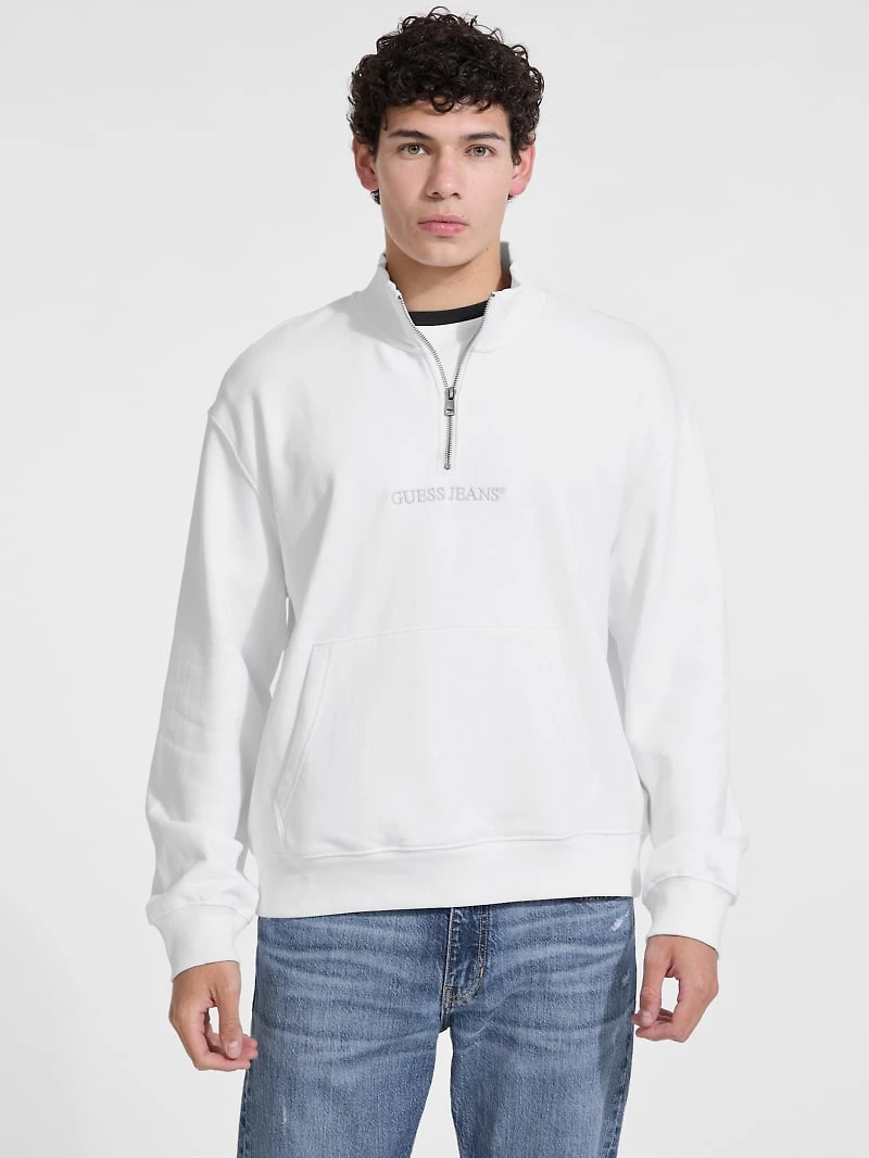 A half-zip, pullover hoody featuring a contrasted collar and sleeves. Made with 100% cotton.