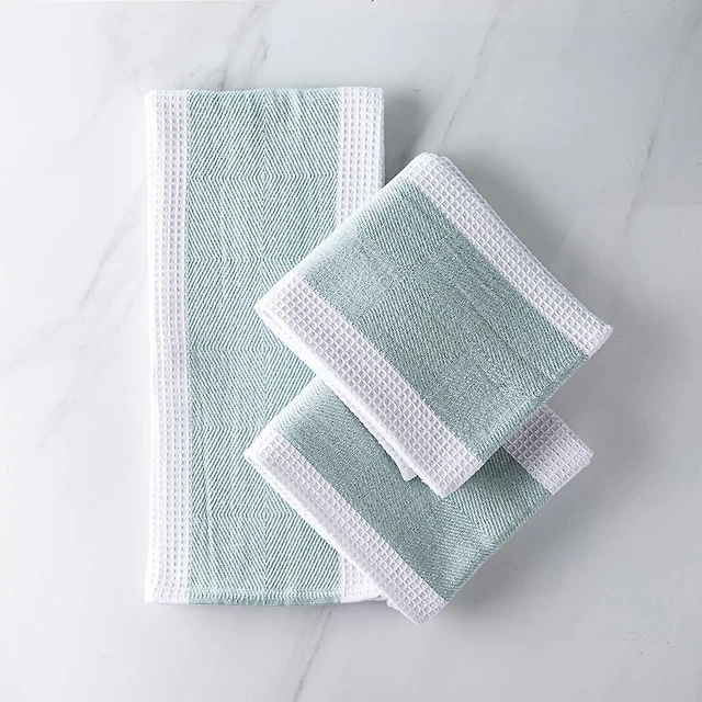 Harman Premium Quality 'Blocks' Kitchen Towel - Set of 3 (Light Green)