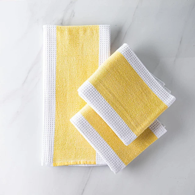 Harman Premium Quality 'Blocks' Kitchen Towel - Set of 3 (Yellow)