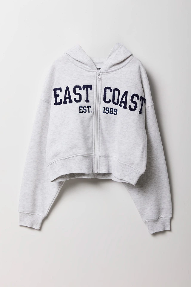 Haut à capuchon en molleton avec motif brodé East Coast chenille et fermeture glissière pour fille