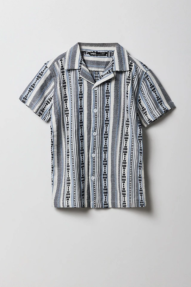 Haut boutonné texturé en tricot de jacquard rayé pour garçon