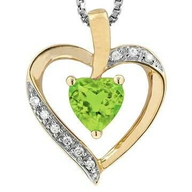 Heart Peridot Pendant with Diamond Accent 14KT Gold