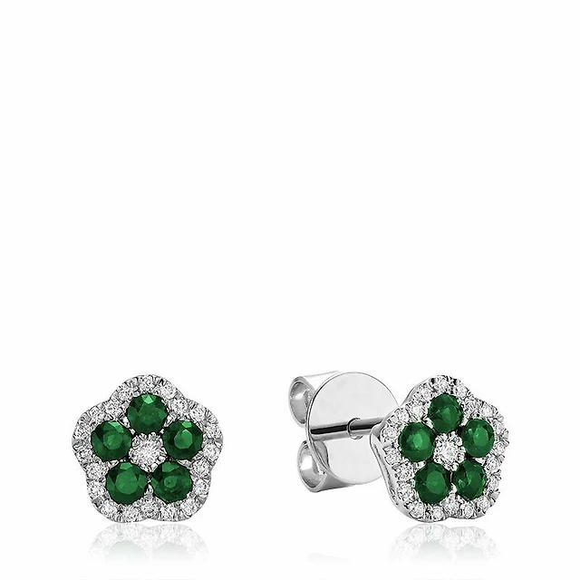 0.46 Carat TW Emerald Diamond Halo Stud Earrings in 10kt White Gold