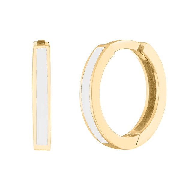 Huggies Hoop Earrings with White Enamel in 10kt Yellow Gold