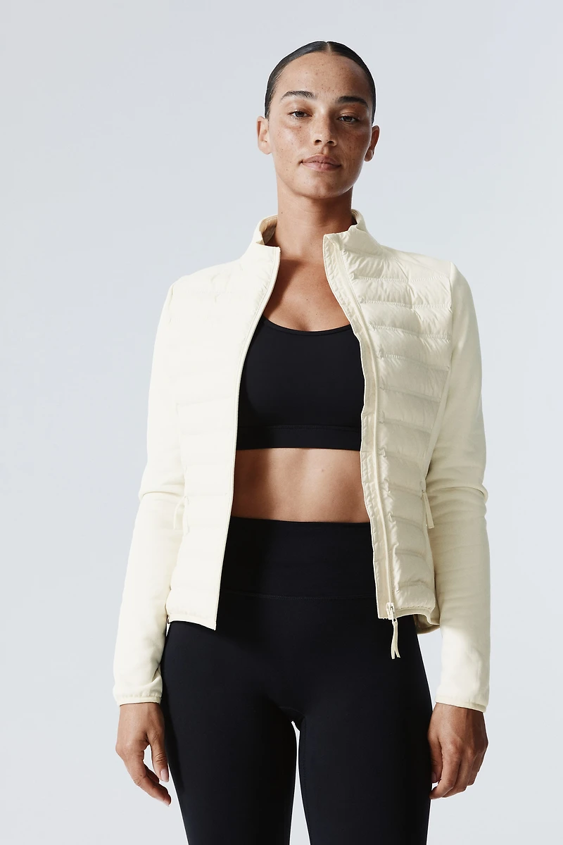 Regular-fit hybrid jacket in stretchy jersey with padded, quilted sections in functional woven fabric made with ThermoMove™ to keep you warm when the temperature drops. Stand-up collar, zipper at front with anti-chafe chin guard, side pockets with zipper, and inner pockets. Covered elastic at cuffs and hem.