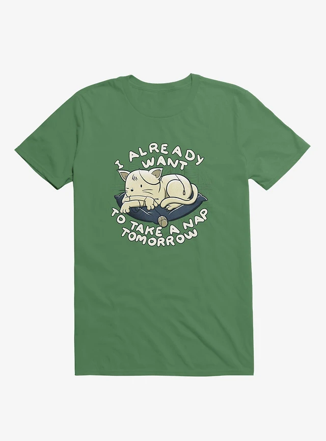 I Already Want To Take A Nap Tomorrow Cat Kelly Green T-Shirt