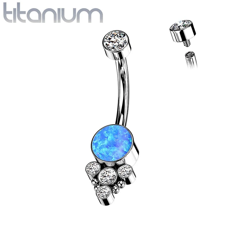 Implant Grade Titanium Internally Threaded Blue Opal Boho Belly Ring