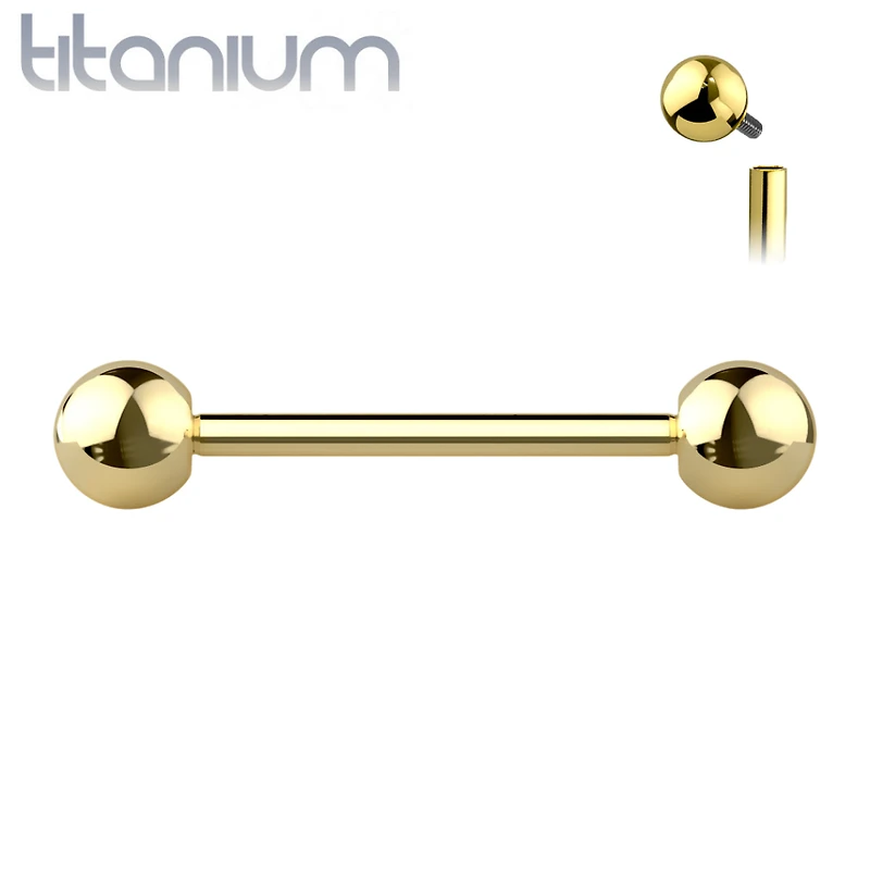 Implant Grade Titanium Internally Threaded Gold PVD Straight Barbell