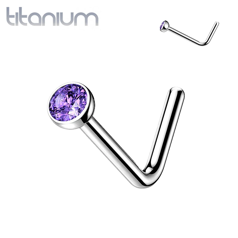 Implant Grade Titanium L-Shape CZ Nose Ring StudImplant Grade Titanium L-Shape CZ Nose Ring StudImplant Grade Titanium L-Shape CZ Nose Ring Stud