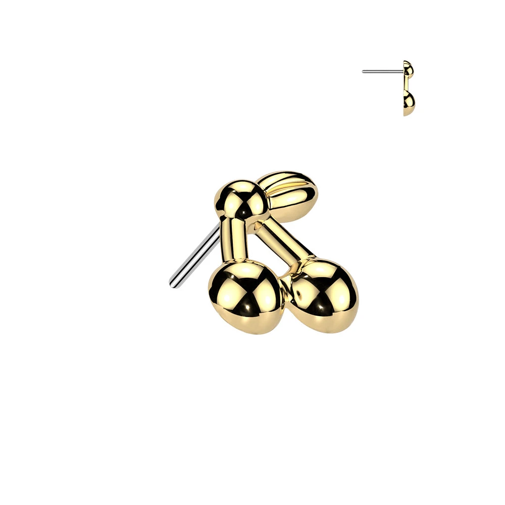Implant Grade Titanium Threadless Gold PVD Cherry Push In Labret With Flat Back